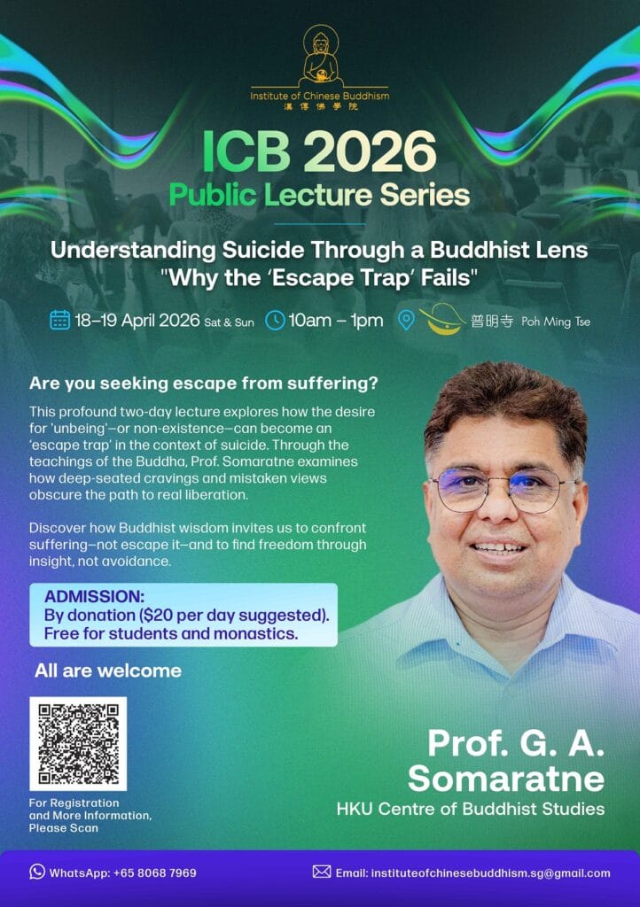 The Institute of Chinese Buddhism (ICB) warmly invites you to the fifth lecture of our ICB 2026 Public Lecture Series with Prof. G. A. Somaratne from the Centre of Buddhist Studies, University of Hong Kong.