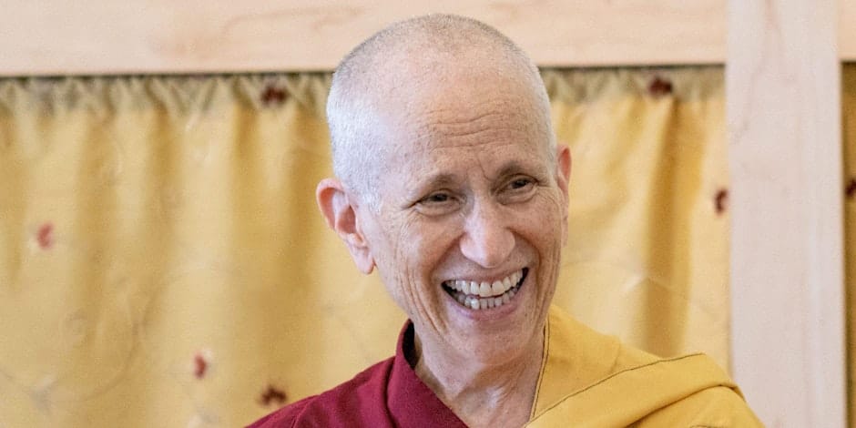 Venerable Thubten Chodron is an author, teacher, and the founder and abbess of Sravasti Abbey, a pioneering Tibetan Buddhist training monastery for Western nuns and monks in the US. She graduated from UCLA and did graduate work in education at USC. Ordained as a Tibetan Buddhist nun in 1977, she has studied extensively with His Holiness the Dalai Lama, Tsenzhap Serkong Rinpoche, and other Tibetan lamas. She received full ordination as a bhikshuni in 1986.